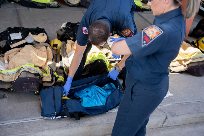 Henderson Fire Departments are preparing large polar pod bags as a means to cool down patients in heat emergencies. The polar pods can be filled with flowing water and ice to immerse the patient.